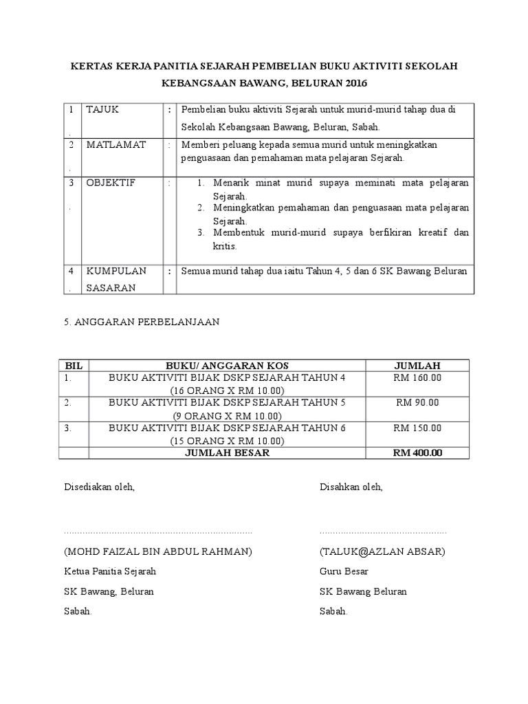 Contoh Kertas Kerja Panitia Sejarah